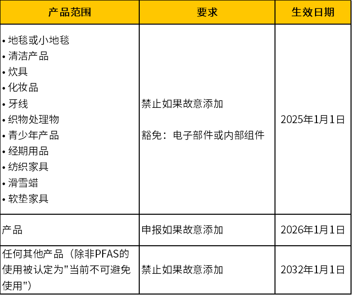 • 新增第 11 点:允许在欧盟内已经使用含有 PFOA 及其盐类和相关化合物的以下产品在特定豁免期满后继续使用: